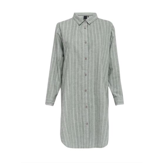 Myk morgen, lun ettermiddag – og kvelder du aldri vil skal slutt. Pilen nattskjorte er sydd i myk, børstet flanell av økologisk bomull – en lun og deilig kvalitet som gjør morgenstunden litt varmere og kvelden enda roligere. Den klassiske skjortemodellen gir et tidløst uttrykk, mens den avslappede passformen og de diskré stripene sørger for en look som er like behagelig som den er pen. Perfekt til rolige morgener med kaffe og bok, eller kvelder du bare vil lande mykt i. Velg mellom flere duse nyanser – og la komforten få bli med deg hele dagen.
