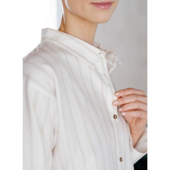 Myk morgen, lun ettermiddag – og kvelder du aldri vil skal slutt. Pilen nattskjorte er sydd i myk, børstet flanell av økologisk bomull – en lun og deilig kvalitet som gjør morgenstunden litt varmere og kvelden enda roligere. Den klassiske skjortemodellen gir et tidløst uttrykk, mens den avslappede passformen og de diskré stripene sørger for en look som er like behagelig som den er pen. Perfekt til rolige morgener med kaffe og bok, eller kvelder du bare vil lande mykt i. Velg mellom flere duse nyanser – og la komforten få bli med deg hele dagen.