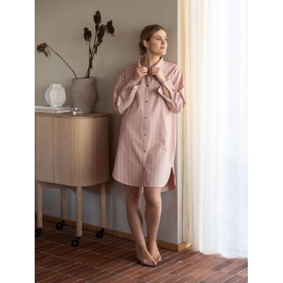 Myk morgen, lun ettermiddag – og kvelder du aldri vil skal slutt. Pilen nattskjorte er sydd i myk, børstet flanell av økologisk bomull – en lun og deilig kvalitet som gjør morgenstunden litt varmere og kvelden enda roligere. Den klassiske skjortemodellen gir et tidløst uttrykk, mens den avslappede passformen og de diskré stripene sørger for en look som er like behagelig som den er pen. Perfekt til rolige morgener med kaffe og bok, eller kvelder du bare vil lande mykt i. Velg mellom flere duse nyanser – og la komforten få bli med deg hele dagen.