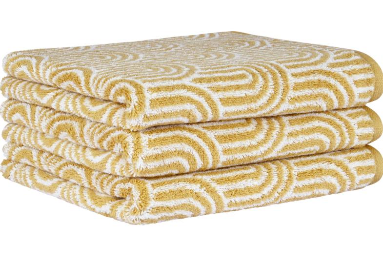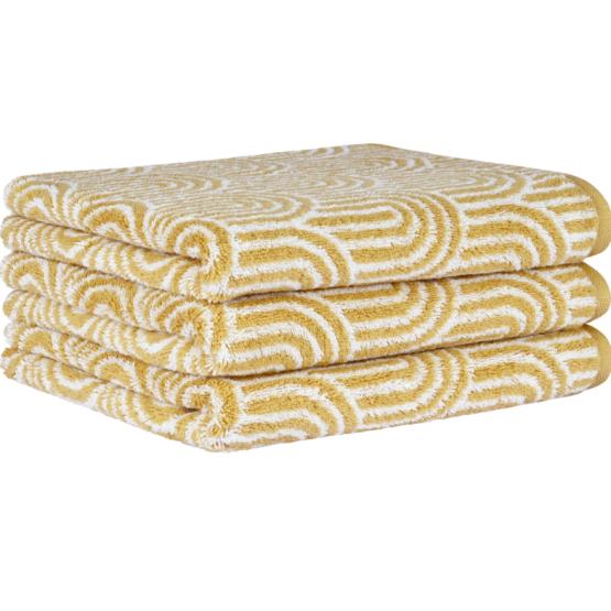 Cawö kolleksjonen Maison kommer i to mønster. En med stramme buer og en med et mykere blad mønster. Begge mønster kommer i fire delikate farger. Som alle mønstrede håndklær fra Cawö så er mønsteret vevet ikke trykt, som gjør at håndklærne er mykere, absorberer bedre og holder seg godt i år etter år.