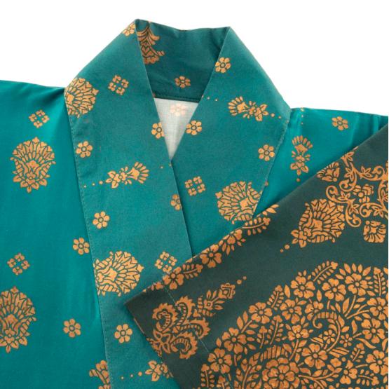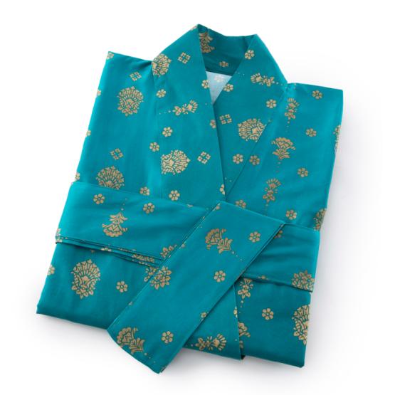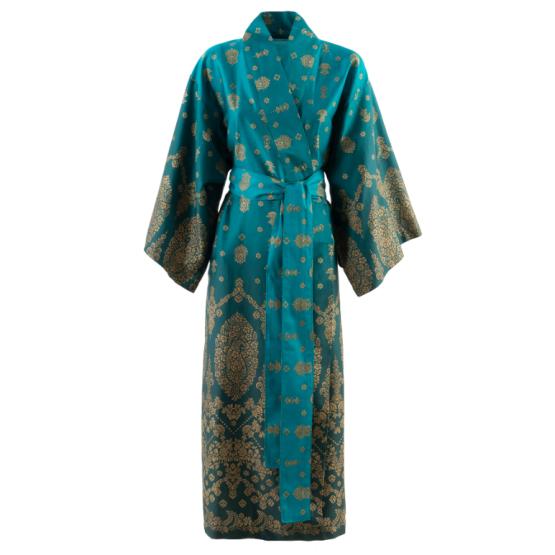 Lekker kimono fra Italia i 100% egyptisk bomull. Den føles myk og behagelig mot huden. De flotte fargene og mønsteret gjør at man føler seg ekstra fin!