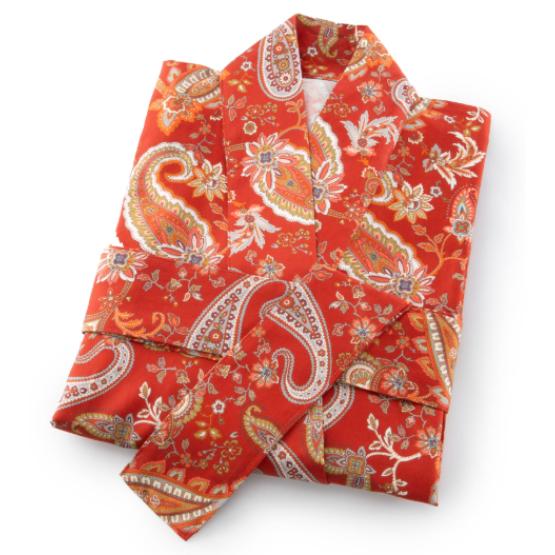 Lekker kimono fra Italia i 100% egyptisk bomull. Den føles myk og behagelig mot huden. De flotte fargene og mønsteret gjør at man føler seg ekstra fin!