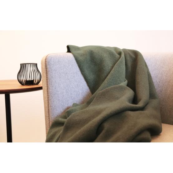 Dette nydelige kashmirpleddet er laget av en fin ull-kashmirblanding. Dermed kombineres de beste egenskapene til begge materialene. Pleddet har ulik farge på forside og bakside hvor frynsene er i samme farge som baksiden. Dette gir pleddet et moderne uttrykk som pynter opp i en sofa eller stol. Det er et lett og mykt pledd som varmer godt.