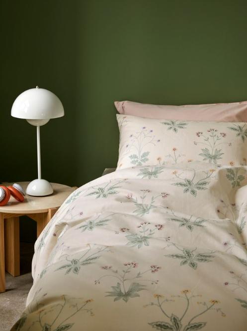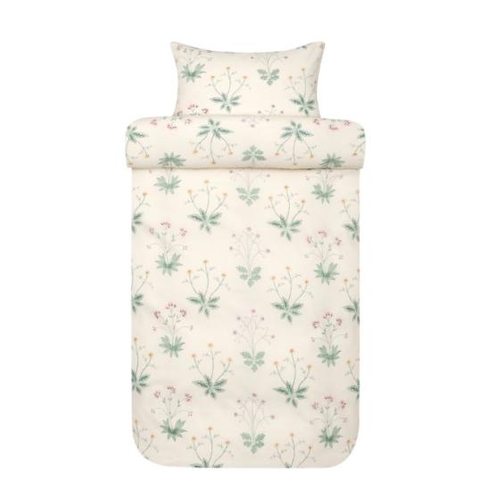 Det vakre blomstermønsteret gir et lekent og sommerlig uttrykk som passer i de fleste soverom. Den elfenbensfargede bunnen gjør det enkelt å kombinere med andre tekstiler og skaper et friskt og innbydende helhetsinntrykk.