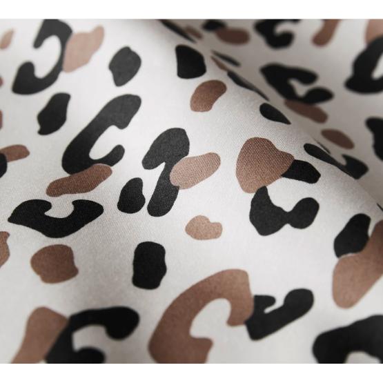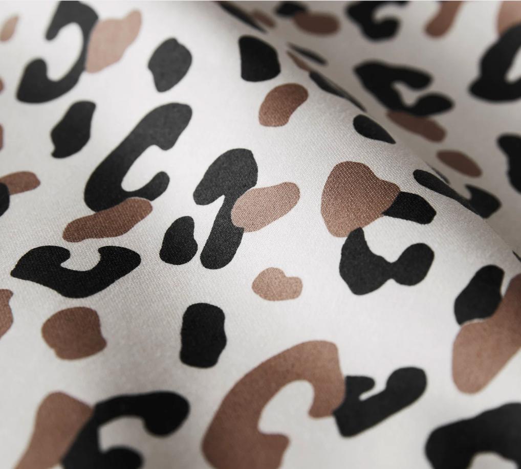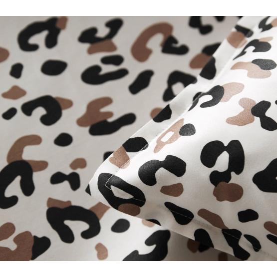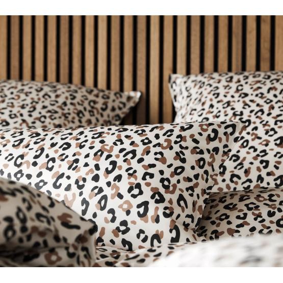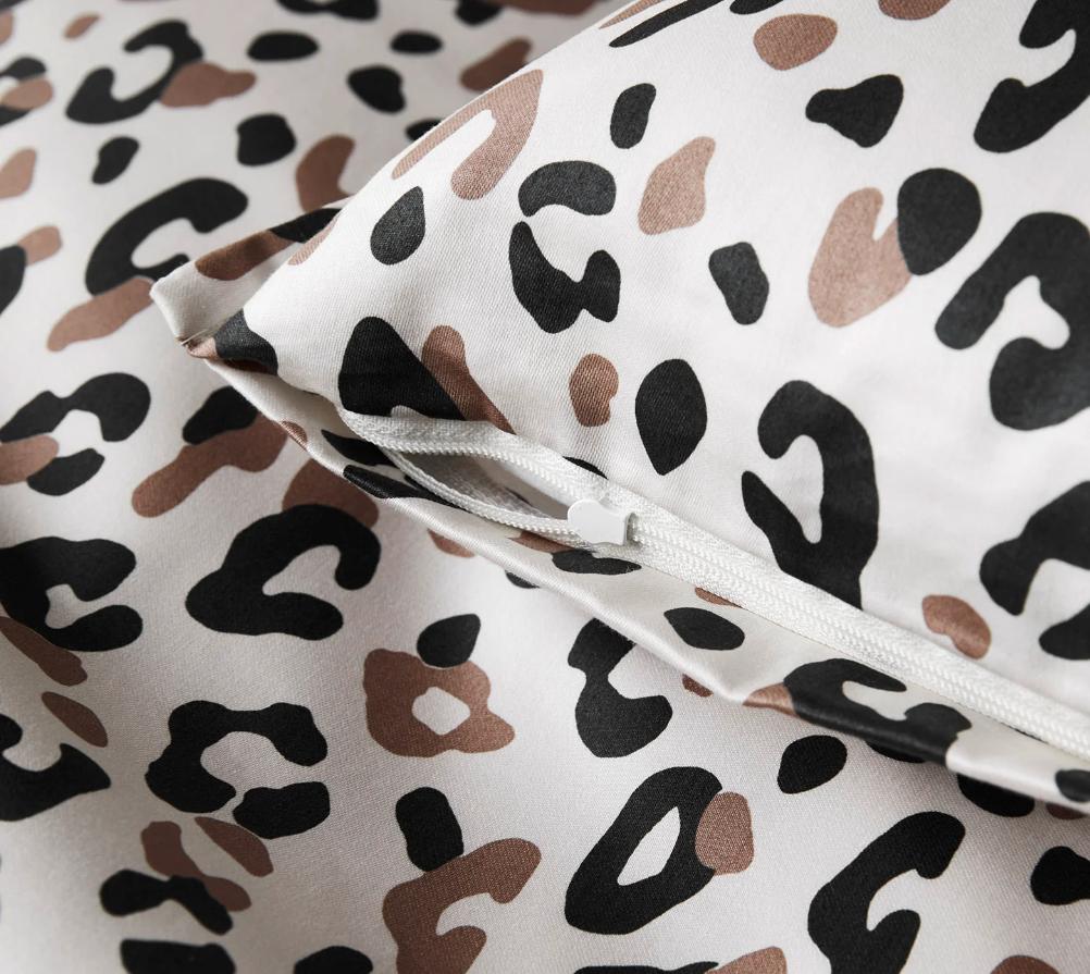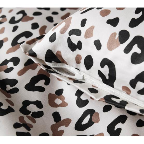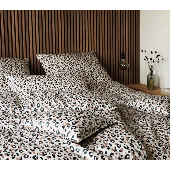 Dette sengesettet er et blikkfang på soverommet! Dyretrykket med leopardmønster kommer til sin rett på den fine satengsengesettet av 100% bomull.